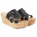 Sandalia Urbana de cuero liso con faja. Base ultra liviana de 6,5 cm de corcho. Plantilla y forreria de eco-cuero. Colores: Negro