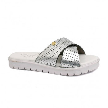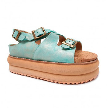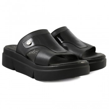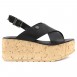 Sandalia Urbana de cuero liso con tiras cruzadas y tira con hebilla regulable. Colores: Negro, Nude y Vison. Base ultra liviana de 7 cm de corcho, plantilla y forreria de eco-cuero.