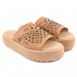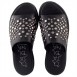 Sandalia urbana con capellada de cuero y apliques de remaches. Base de goma eva de 4 cm. de altura. Forrería y plantilla en eco-cuero. Aplique de logo en metal.