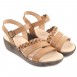 Sandalia Urbana de cuero con tiras lisas y trenzada. Hebilla regulable en el tobillo. Color Negro. Base ultra liviana de 1 cm y 4 cm de altura en el taco, símil madera. Forrería y plantilla en eco-cuero. Aplique de logo en metal.