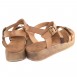 Sandalia urbana con tiras cruzadas de cuero. Hebilla regulable en el empeine y el talón. Base de goma flexible antideslizante de 2 cm y 3 cm de altura en el taco. Forrería en eco-cuero. Plantilla microfibra Aplique de logo en metal.
