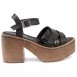 Sandalia Urbana de cuero en tiras, grabado y liso combinado. Con pulsera y hebilla regulable. Colores: Negro. Base ultra liviana de 8,7 cm, plantilla y forreria de eco-cuero