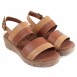 Sandalia urbana con dos fajas anchas de cuero combinado. Hebilla regulable en el talón. Base de goma flexible antideslizante de 2 cm. y altura en el taco de 4 cm. Forrería y plantilla en eco-cuero. Aplique de logo en metal.